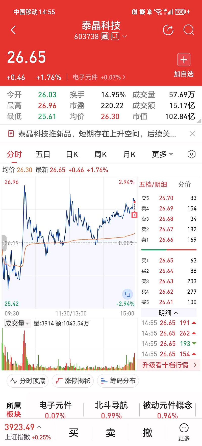 $泰晶科技(SH603738)$
