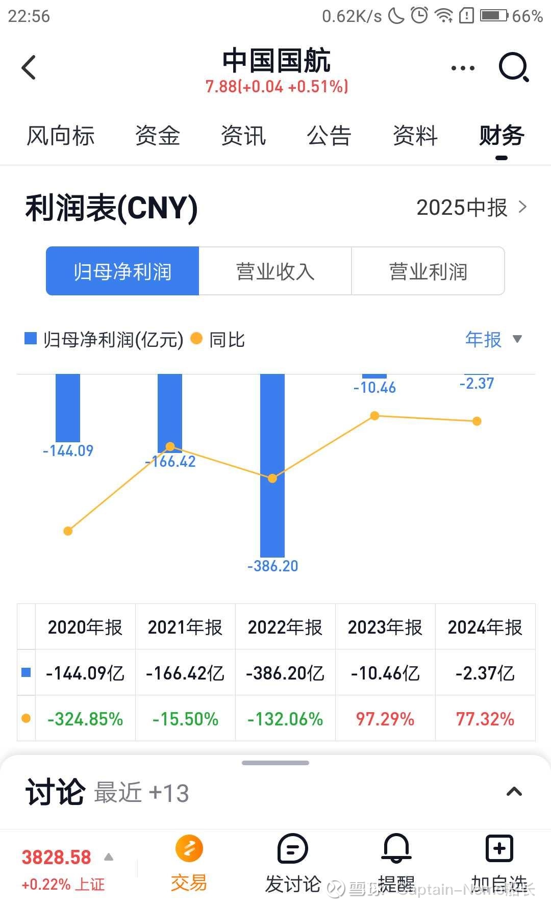 雪球自己清清楚楚的显示$中国国航(SH601111)$ ,2024年明明净利润亏损2.1亿。哪里有160亿利润?