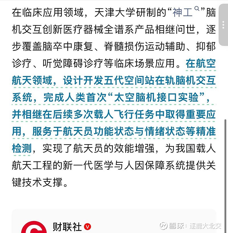在临床应用领域,天津大学研制的“神工”脑机交互创新医疗器械全谱系产品相继问世,逐步覆盖脑卒中康复、脊髓损伤运动辅助、抑郁诊疗、听觉障碍诊疗等临床场景应用。在航空航天领域,设计开发五代空间站在轨脑机交互系统,完成人类首次“太空脑机接口实验”,并相继在后续多次载人飞行任务中取得重要应用,服务于航天员功能状态与情绪状态等精准检测,实现了航天员的效能增强,为我国载人航天工程的新一代医学与人因保障系统提供关键技术支撑。