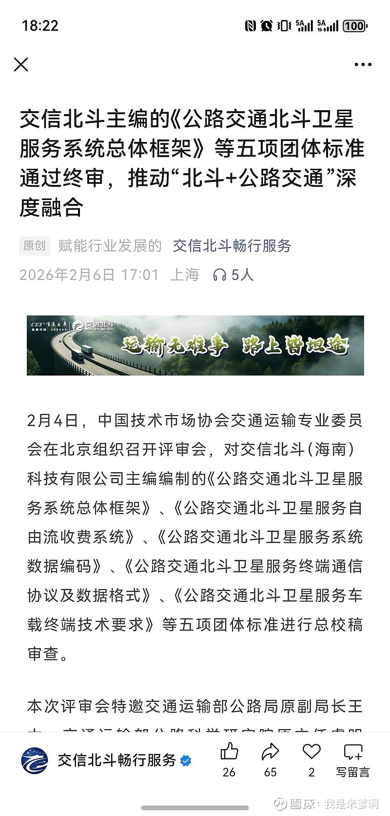 “北斗+公路交通”团标通过终审,随后进入报批和发布环节,5月正式出台!