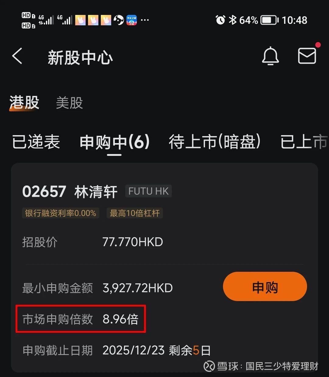 每股63港元至81港元这个区间,每手100股,最低申购金额为8181.69港元,按照发行价公司市值将介于140亿港元至180亿港元。有绿鞋,7名基石投资者,累计认购约9000万美元(超7亿港元),申购占比43.75%,接近一半,国泰君安国际和华泰国际为联席保荐人。发行22222300股,其中香港公开发售2222300股,国际发售20000000股。机制B,固定分配10%,截止发文前,申购倍数超11倍。