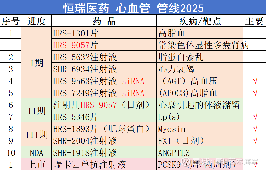 截至2026年2月,恒瑞医药的代谢心血管进入临床至报产共20款新药,上市4款新药,合计24款,均在国内开临床和上市。