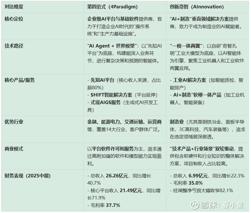 如果撇开市值及入通与否的差异,我个人喜欢创新奇智。它也许增长不会很快,但是壁垒可能更为稳固。AI在企业里面,核心还是要为企业提高效率,省钱,前期可以大量试错,但最终沉淀下来的只是几个工具。以前的工具,特别是工业软件,已经有很强的壁垒,它们也在改造升级,结合AI,但由于国际关系,中国的工业恐怕将来也只能用国内的AI,而且这些天然就需要私有化部署。这就是创新奇智的长期空间。