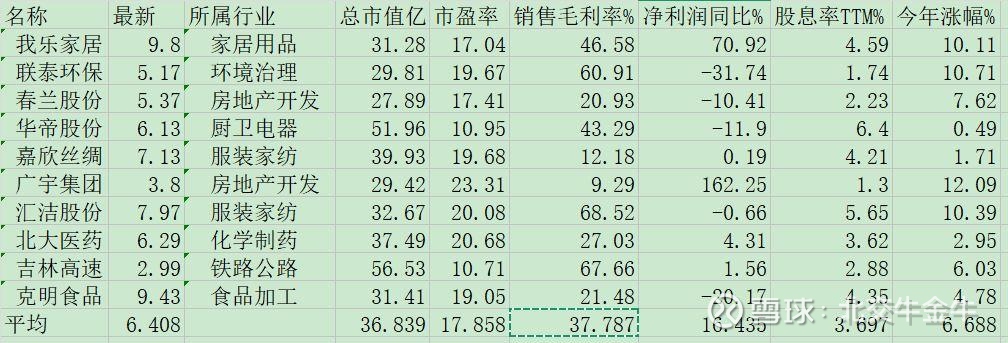 截止周五(3月6日),这10只股票今年涨幅6.69%,高于A股各大指数。从下表可以看出,这10只股票具有股价较低、市值较小、市盈率较低等共同特点,尤其是平均股息率高达3.7%。涨时重势,股价较低、市值较小的股票往往弹性更大,上涨空间更大;跌时重质,如果大盘及个股下跌,这10只股票也不妨拿着,可获得远高于银行利息的收益,心可安矣。$吉林高速(SH601518)$ $北大医药(SZ000788)$ $联泰环保(SH603797)$查看图片
