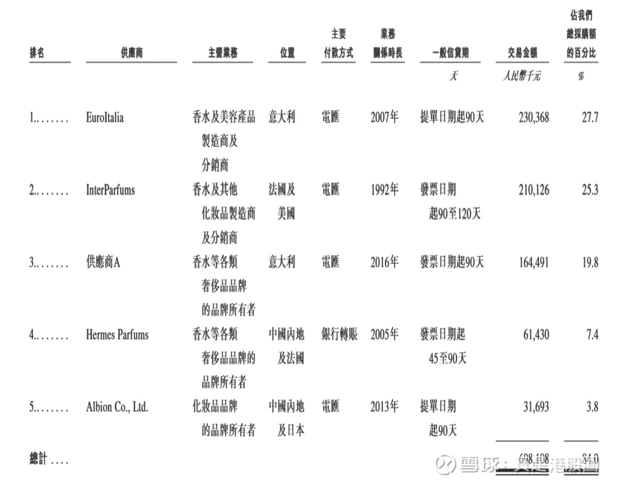 颖通的收入高度集中于香水业务(2025财年占总收入的81.7%),而香水业务的成功又与少数几个核心品牌的表现和合作关系深度绑定。公司的前5大供应商的供货占比基本能达到80%上下,非常集中。