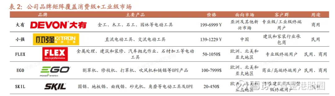 泉峰控股的业务涵盖工业级和消费级电动工具以及高端和大众市场的 OPE 产品。旗下拥有 EGO、SKIL、FLEX、DEVON 大有和 X - TRON 小强等多个知名品牌,产品远销全球 100 多个国家,覆盖 “家用 - 专业 - 商用” 的全场景产品矩阵,满足了不同层次消费者的多样化需求。