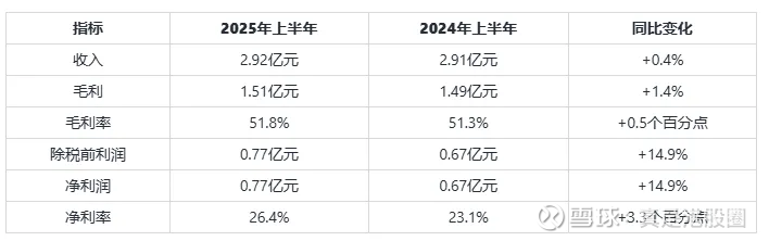 但前段时间,贝克微发布了一份增利不增收的中期业绩报告数据:营收同比仅微增 0.4% 至 2.92 亿元,净利润却同比大涨 14.9% 至 7715 万元,毛利率逆势提升 0.5 个百分点至 51.8%。