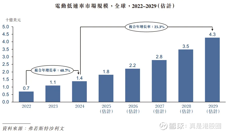 根据弗若斯特沙利文报告,全球电动低速车市场规模从2022年的7.0亿美元增长至2024年的11亿美元,复合年增长率达到40.7%;预计将于2029年在全球达到42.7亿美元,复合年增长率达到25.3%。