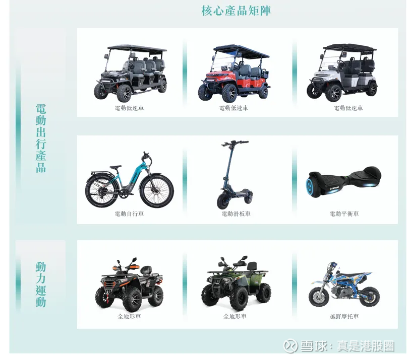 在贴合市场需求下,涛涛车业的业务着重分为两大部分:(1)电动出行产品包括 (i)满足社区及场内短途出行的电动低速车(如电动自行车、电动滑板车及电动平衡车);及(2)动力运动(包括全地形车与越野摩托车等产品)业务。