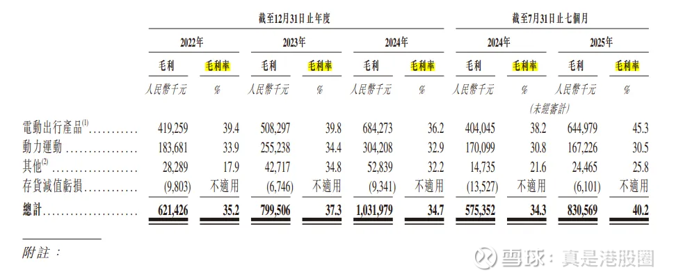 其中电动出行产品是销售主力,在截至2025年7月31日的七个月里贡献了68.9%的收入。更重要的是,这部分收入的毛利率达到45.3%,是其所有产品中利润率最高的。这一收入结构极大程度上助推了公司整体业绩的增长。