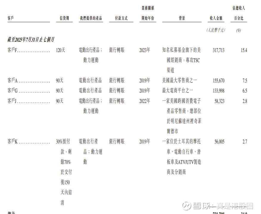 如今,公司已入驻了Target、Bestbuy、Academy、Kohl's等主流商超。这部分客户成为公司销售渠道上不可或缺的一部分。于2022年、2023年及2024年以及截至2025年7月31日止七个月,公司来自五大客户的收入分别占各期间涛涛车业总收入的36.2%、49.7%、48.9%及34.9%。