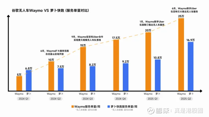 不过,百度声称到Q3累计订单数超越了Waymo,说明萝卜Q3单季度的订单数又甩开了Waymo。基于这一点,也可以说,Q3可能会是国内增速边际远大于美国。
