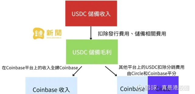 Circle发行的代币USDC,跟美元进行1:1的挂钩。使用者用美元兑换成等额USDC使用,而交换掉那一部分美元,进入Circle表内,形成类似于保险那样的浮存金,然后Circle将这笔资产用以购买国债,产生利息收入,这也是其商业模型中,营收的96%来源。