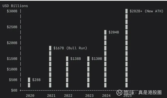 机构骗别人可以,别把自己骗了。要真那么顺利,怎么21-23年稳定币市场就增长了那么点。1万亿的未来规模预期怎么得出来的,实际上就是今年的60%增速连续乘4年。但明显,这两年增速高,有加密货币牛市的带动,跨境支付场景驱动的用量提升,渗透速度,并没有加密货币强。