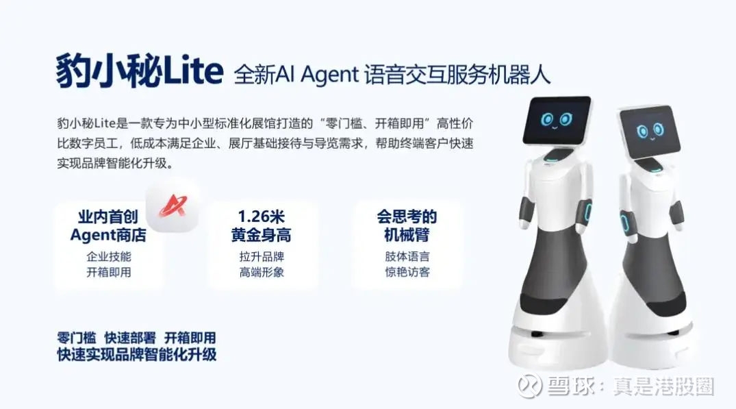 豹小秘Lite不仅配备“会思考的机械臂”以表达更多肢体语言,还具备业内首创的Agent商店,客户轻触即可激活技能。同时,其通过硬件精简实现成本可控,能适配更多中小客户的预算需求。