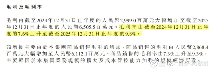 2025年,鸣鸣很忙的毛利率提升至9.8%,较2024年的7.6%提升了2.2%。
