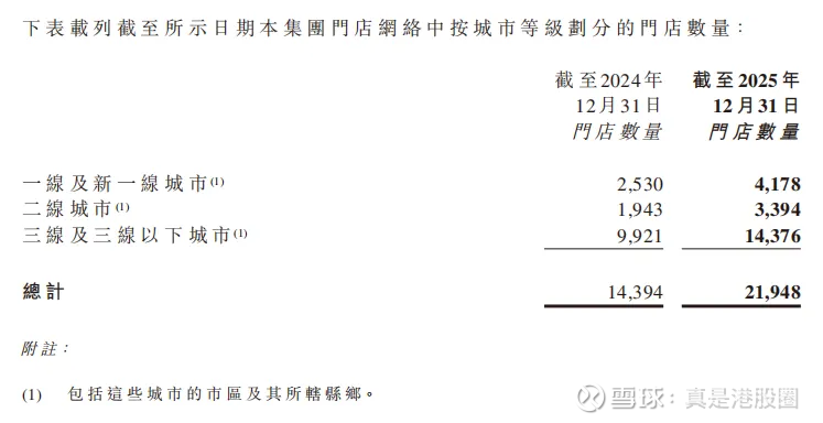 从门店分布来看,截至 2025 年末,公司门店达到 21,948 家,覆盖全国 30 个省份和所有城市等级,其中约 60% 位于县城及乡镇,覆盖 1,401 个县,对全国县城覆盖率约 75%。