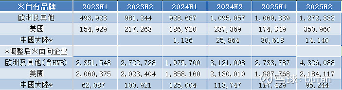 2025Y营收143亿,同比增21%,其中雾化131亿,较21年高点138亿还有一点点距离,新赛道HNB12亿,劲增38.5%。按销售分类看toB 114亿,增速21.7%,自有品牌29亿,增速21%,基本同步。