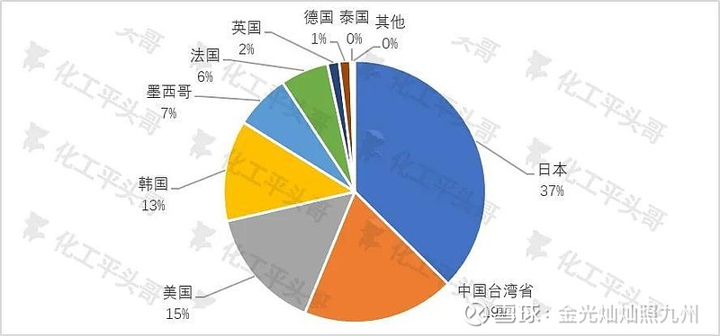 中国碳纤维进口量最大的来源地为日本,2024年约占到中国总进口量37%,位居进口总量第一位。第二位是中国台湾地区,约占到总进口量18%。第三位为美国,约占到总进口的15%。