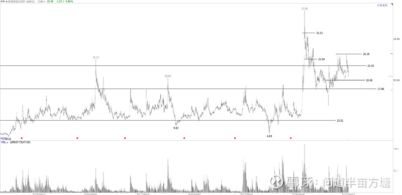 其实总体上我还是老的观点,它这个玩意有一个5年的箱体底部,上一波行情的头部过于仓促,所以我还是认为它有下一波。前面自己有说过在18进场,然后23附近的时候说是等一个比较稳定的区间,但是它这个走势一直不理想,所以就没咋跟了。