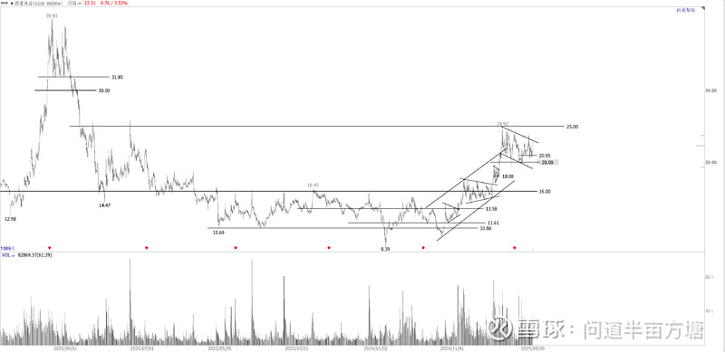西麦食品,最近几个月都在这个下降通道里面震荡下行,我还是认为这个是旗形整理。