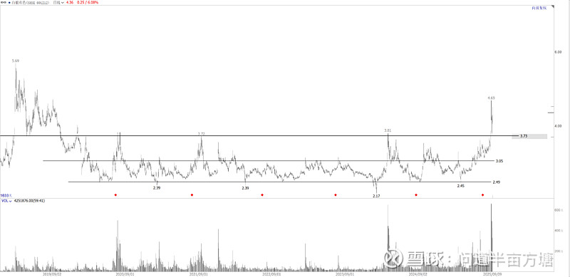 这个地方,首先6年的底部震荡,前几天一根线的高点大概率不是顶部。当前视为回调整理动作,所以接下来这个就主要看3.7-4.7之间的震荡。这么来说吧,一个月线级别的底部突破,配套一个月线级别的整理动作非常合理吧~ 所以做好震几个月的准备。