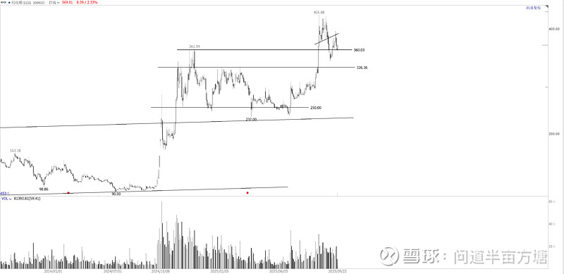同花顺,这个标的也很让人纠结。首先不纠结的是,我还是不认为这个是趋势的结束,没有趋势结束的明显特征,目标500不变。