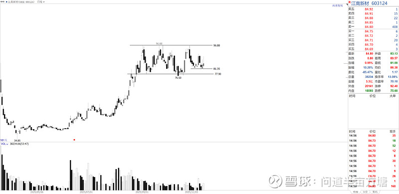 ,这个玩意呢,我还是想要等80以下。毕竟它是一个标标准准的横盘,如果进的位置不够好,即使最后涨了,都有可能在不断的反复震荡中失去筹码。