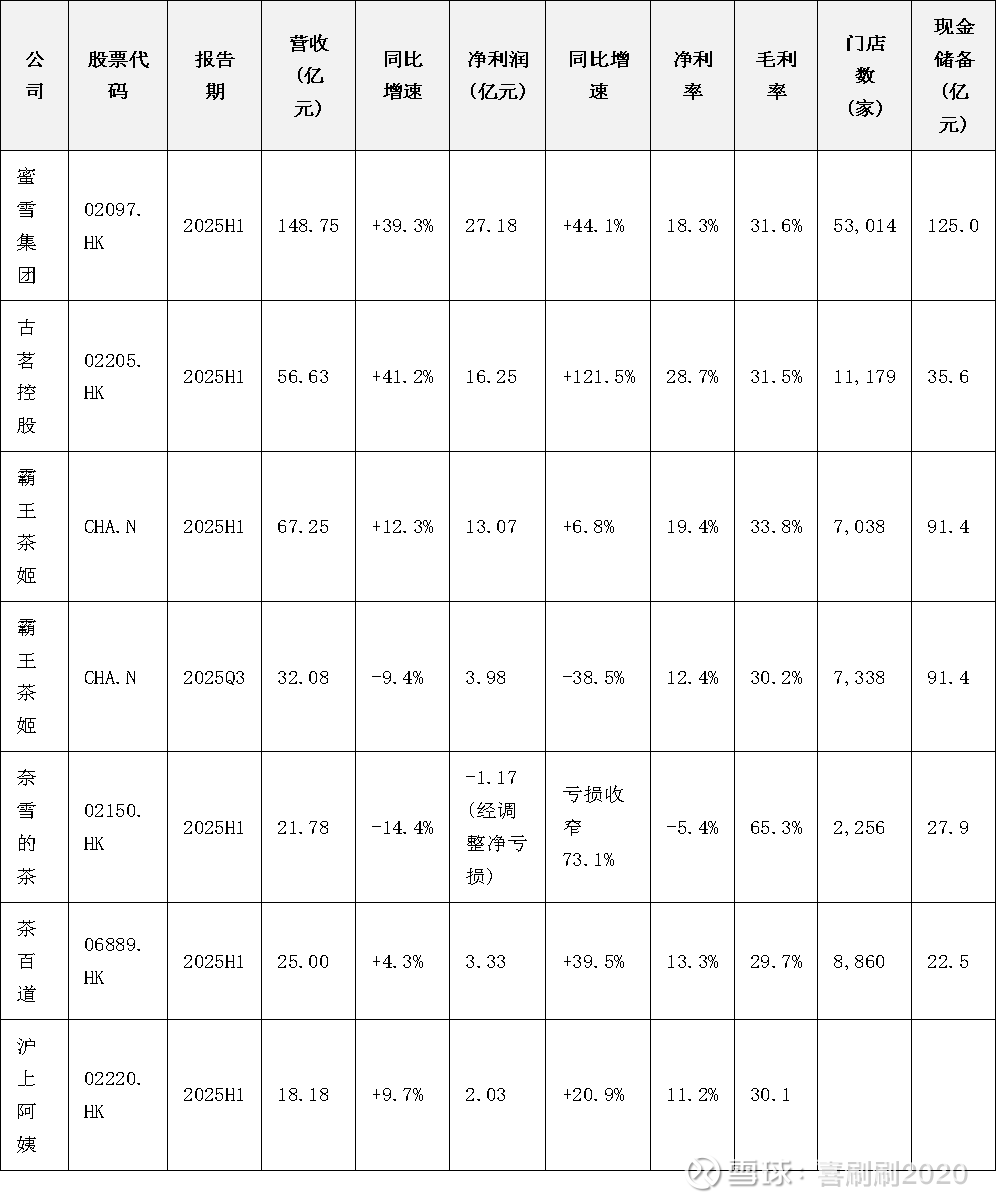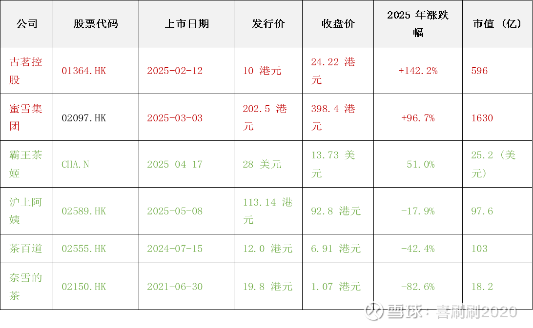 2025年被称为“新茶饮IPO年”,蜜雪冰城$蜜雪集团(02097)$ 、古茗$古茗(01364)$ 、霸王茶姬$霸王茶姬(CHA)$ 等头部品牌相继上市,加速供应链整合与全球化布局。岁尾已至,这些上市公司的资本市场表现如何呢?