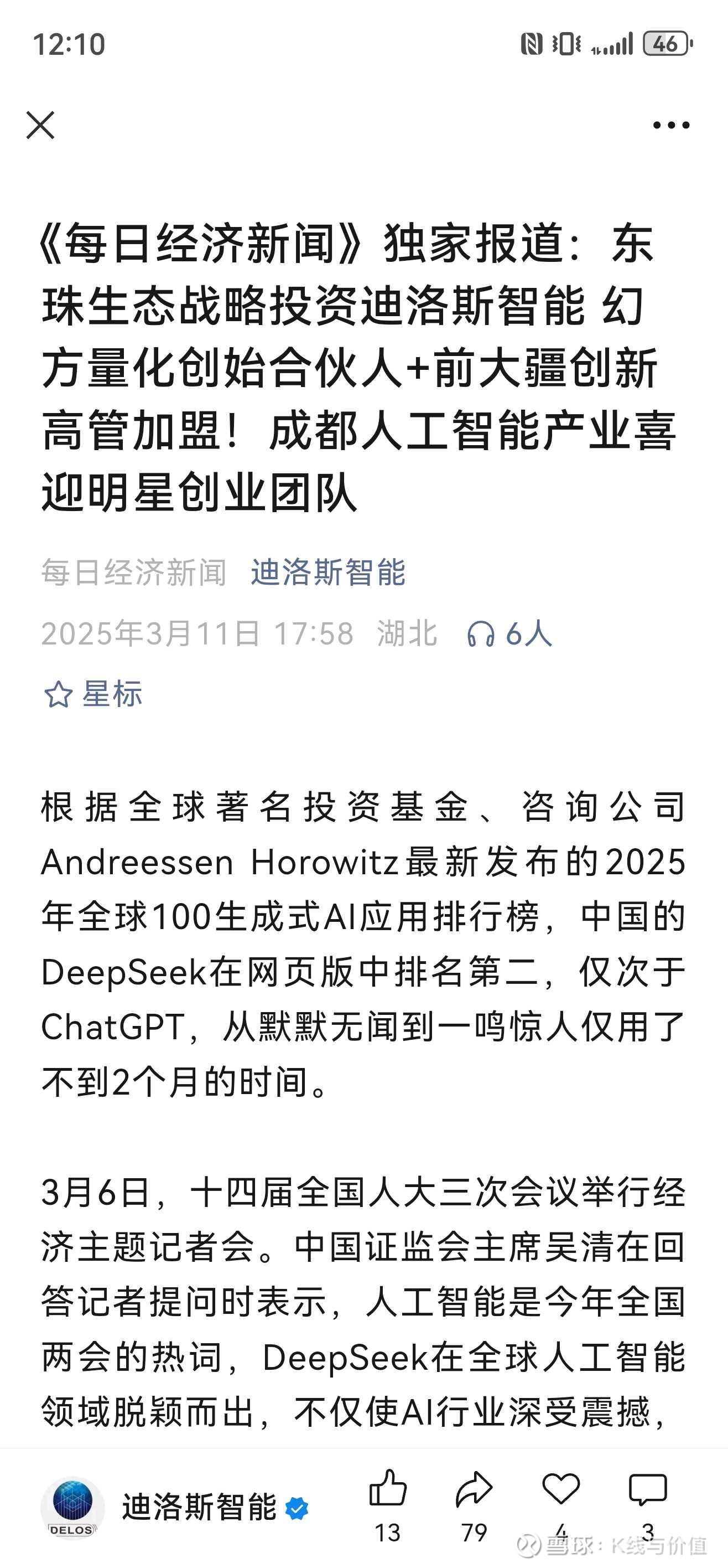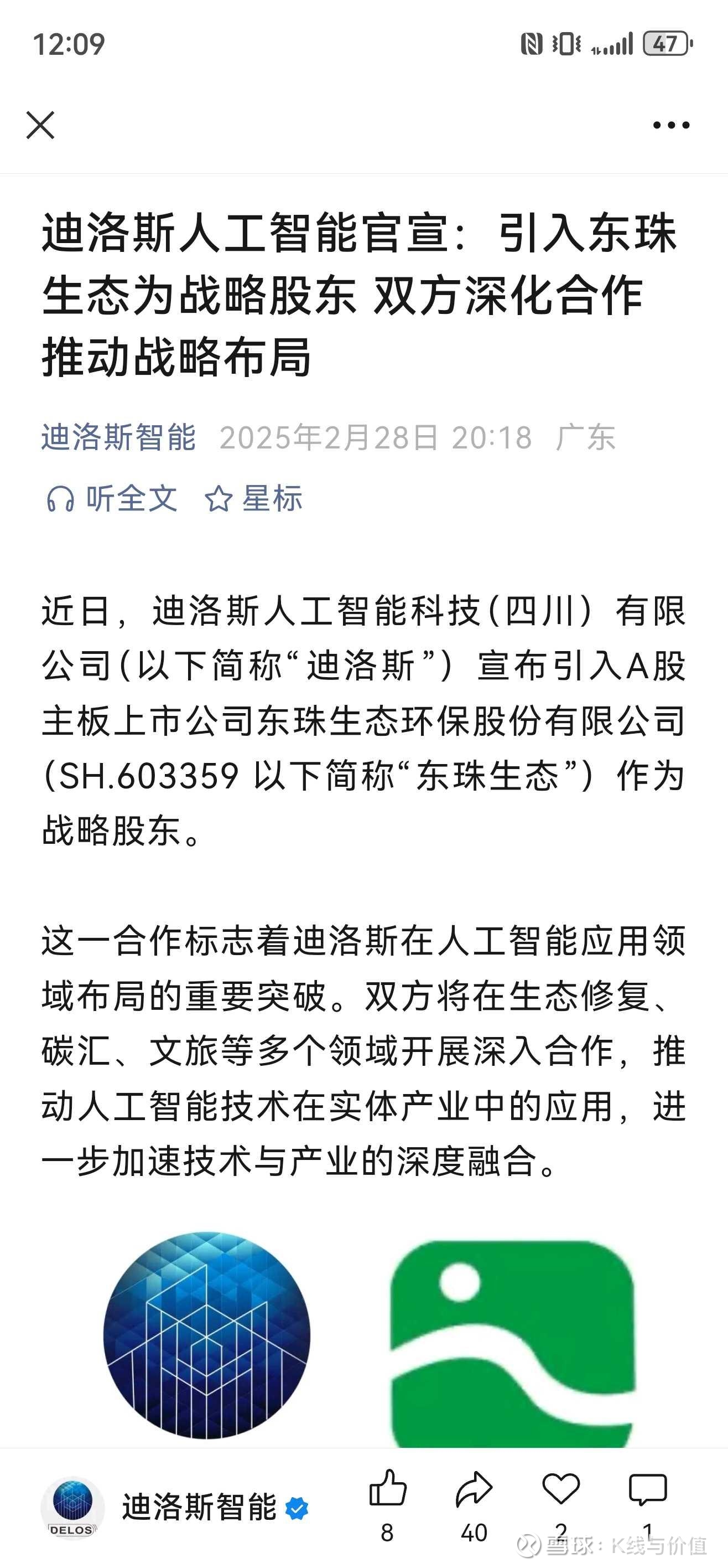 迪洛斯智能一家成立于2025年1月的公司,gzh第一篇文章2月19号,2月28号专门写了介绍东珠生态为战略股东,二者绑定的关系不可谓不深厚。