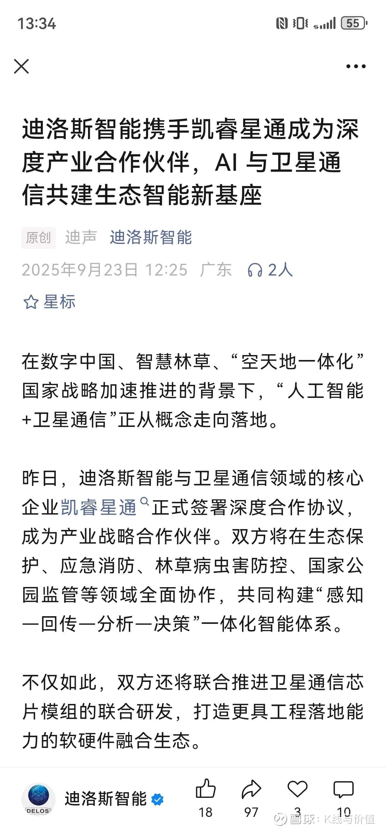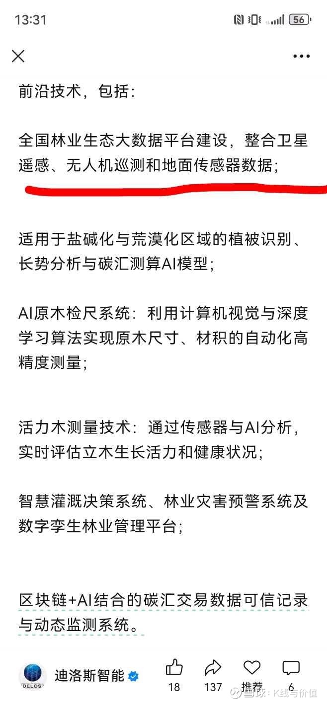 上市公司和迪洛斯围绕生态治理➕林业修复➕人工智能开创了新的协同创新格局,甭管之后成什么样,主业加AI的路子跑通了