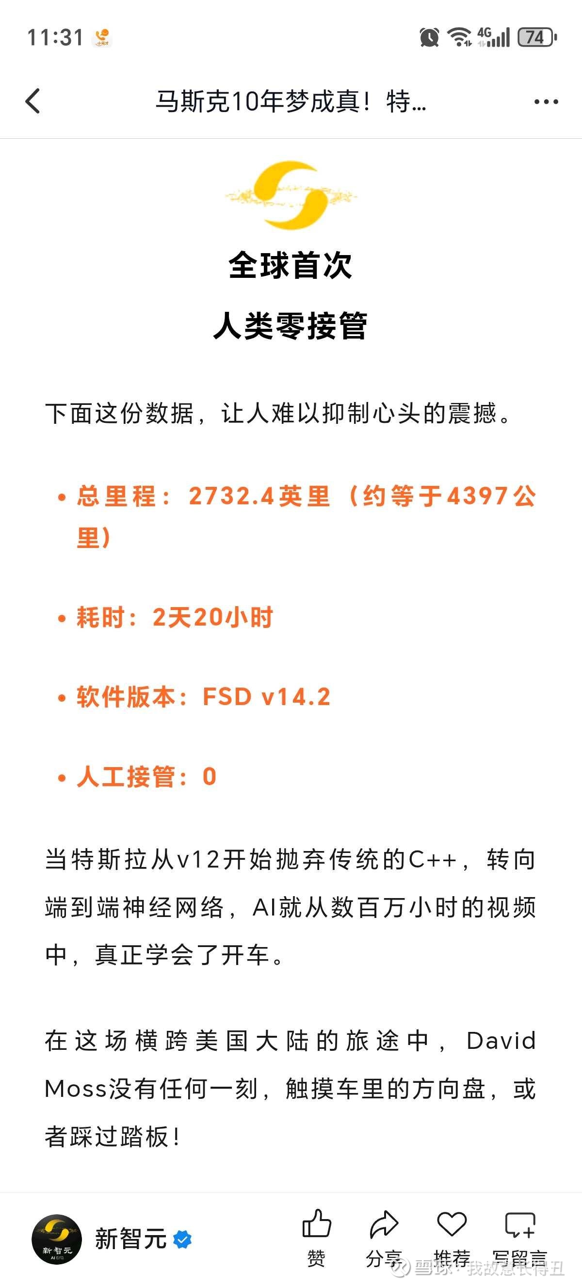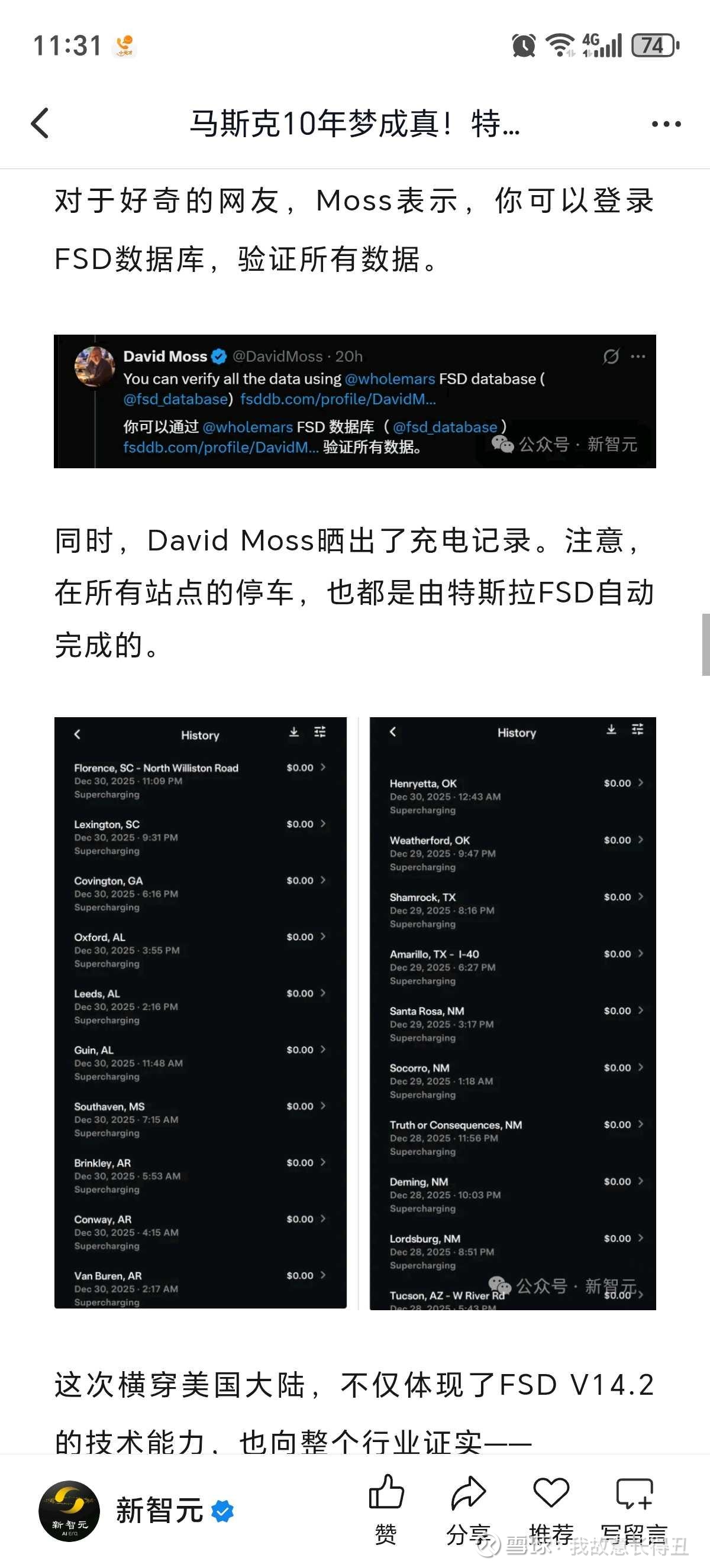 特斯拉全球首次自动驾驶横穿美国,人类0接管。