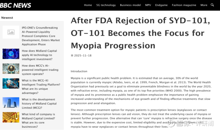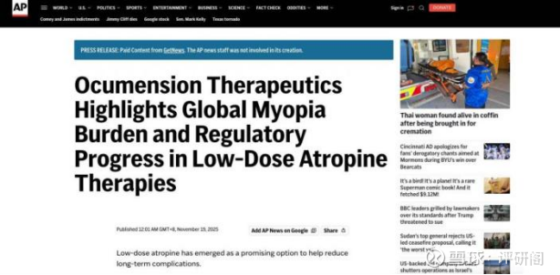 还发现一个有意思的点,美联社跟踪了Syd的新闻,侧面证实了低浓度阿托品这个领域,欧康可能弯道超车,很有趣,可以期待一下。