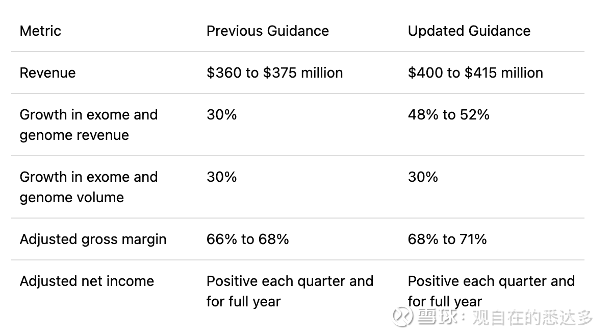 由于积极的增长趋势,管理层提高了全年的财务指引至4-4.15亿美元,并上调了外显子组和基因组的收入预期,希望在 2025 年全年实现 48% 至 52% 的增长。
