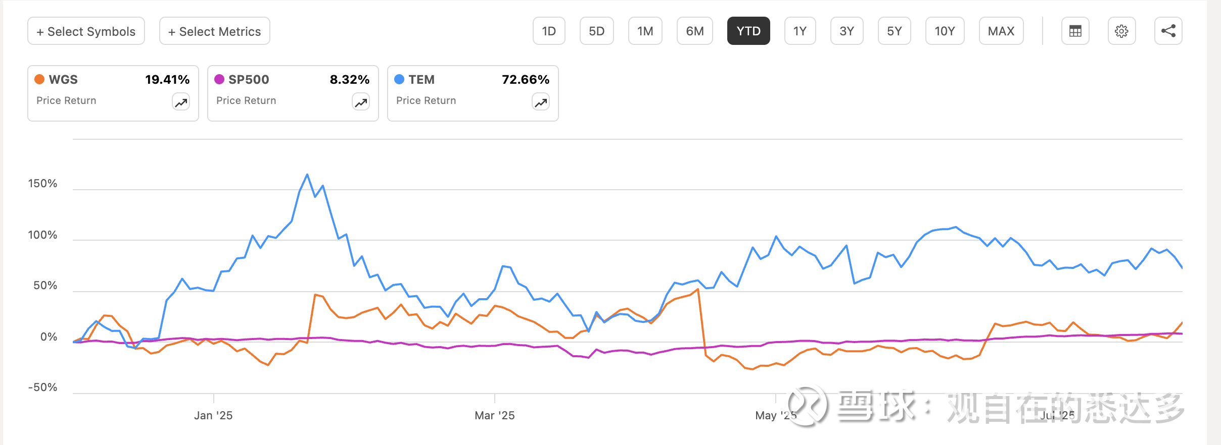 两家公司都通过收购来弥补检测的短板,扩展自己的数据价值,和拥抱AI技术,但股价表现来说,今年TEM收到更多追捧,不妨考虑WGS未来的潜力。