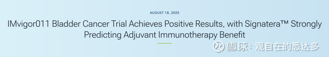 Natera$Natera(NTRA)$ 今天宣布了其针对肌层浸润性膀胱癌(MIBC)的随机III期临床试验IMvigor011的积极结果,接受罗氏-基因泰克阿特珠单抗(Tecentriq®)治疗的 Signatera 阳性(MRD+)患者在无病生存期和总生存期方面具有统计学上显著且临床上有意义的改善。