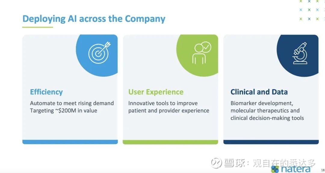 Natera 正在人工智能 (AI) 领域进行重大投资,以扩大运营规模、提升用户体验并推动科学创新。人工智能使公司能够更高效地扩展规模,并创造额外的运营杠杆,随着时间的推移,可节省约 2 亿美元。公司正在构建一整套全新的人工智能用户体验工具,旨在改变与医生和患者的互动方式。利用人工智能开发新的算法,以支持下一代诊断和临床洞察,包括新的诊断生物标志物、分子疗法和加速临床试验。