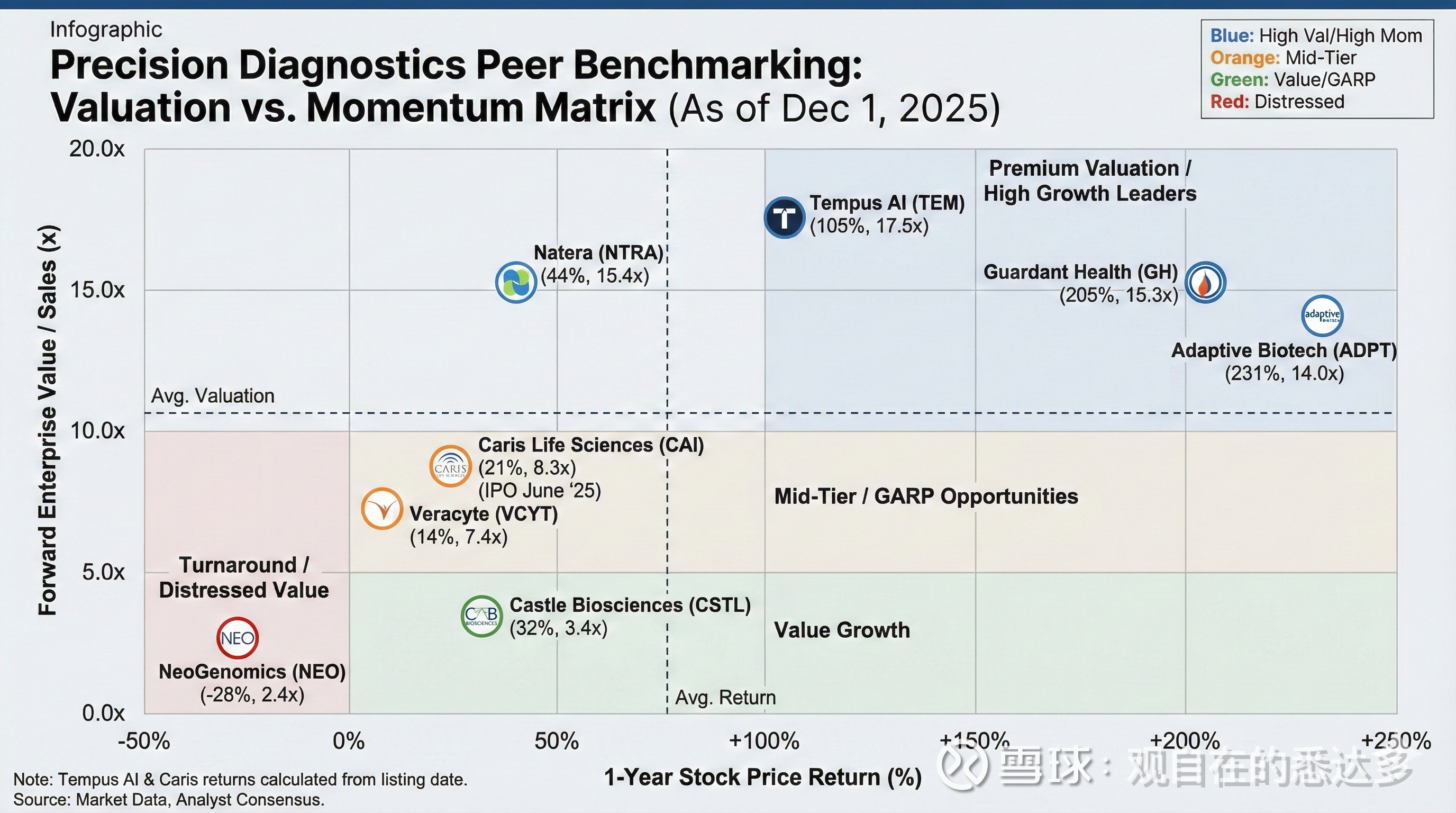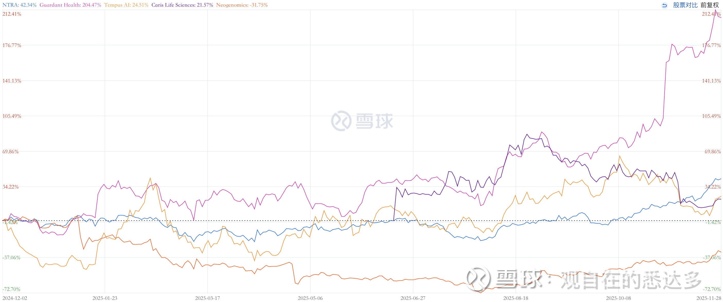 在这个逻辑下,诸如 Guardant Health、Natera、Tempus AI、NeoGenomics、Castle Biosciences、Veracyte、Caris Life Sciences 和 Adaptive Biotechnologies 等具有类似特征的公司都是我们可以关注和考虑的。