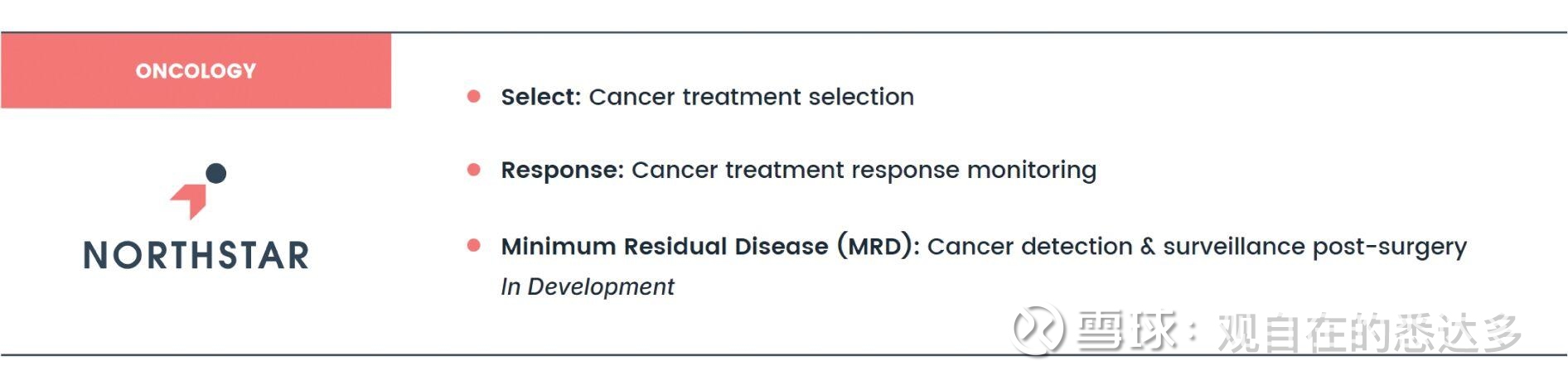 目前最典型的应用就是“单基因”NIPT,以及液体活检,比如肿瘤伴随诊断,MRD等。其Northstar Select和Northstar Response检测产品通过液体活检提供突变识别和癌症负荷评估,服务于肿瘤市场。