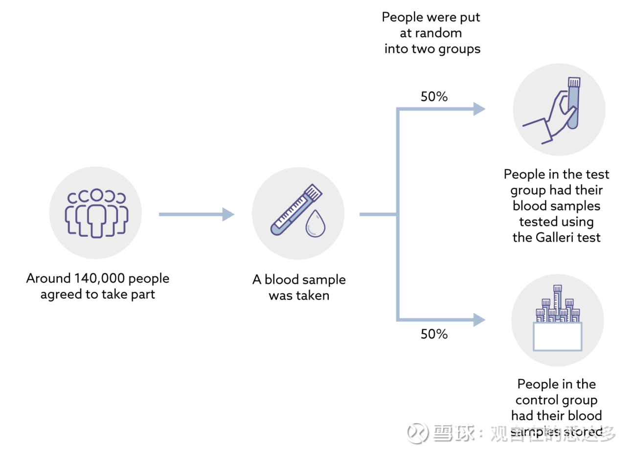 实验的参与者是过去3年内未诊断为癌症的”健康人群”,入组后在首次抽血后被随机分配到以下两组之一: