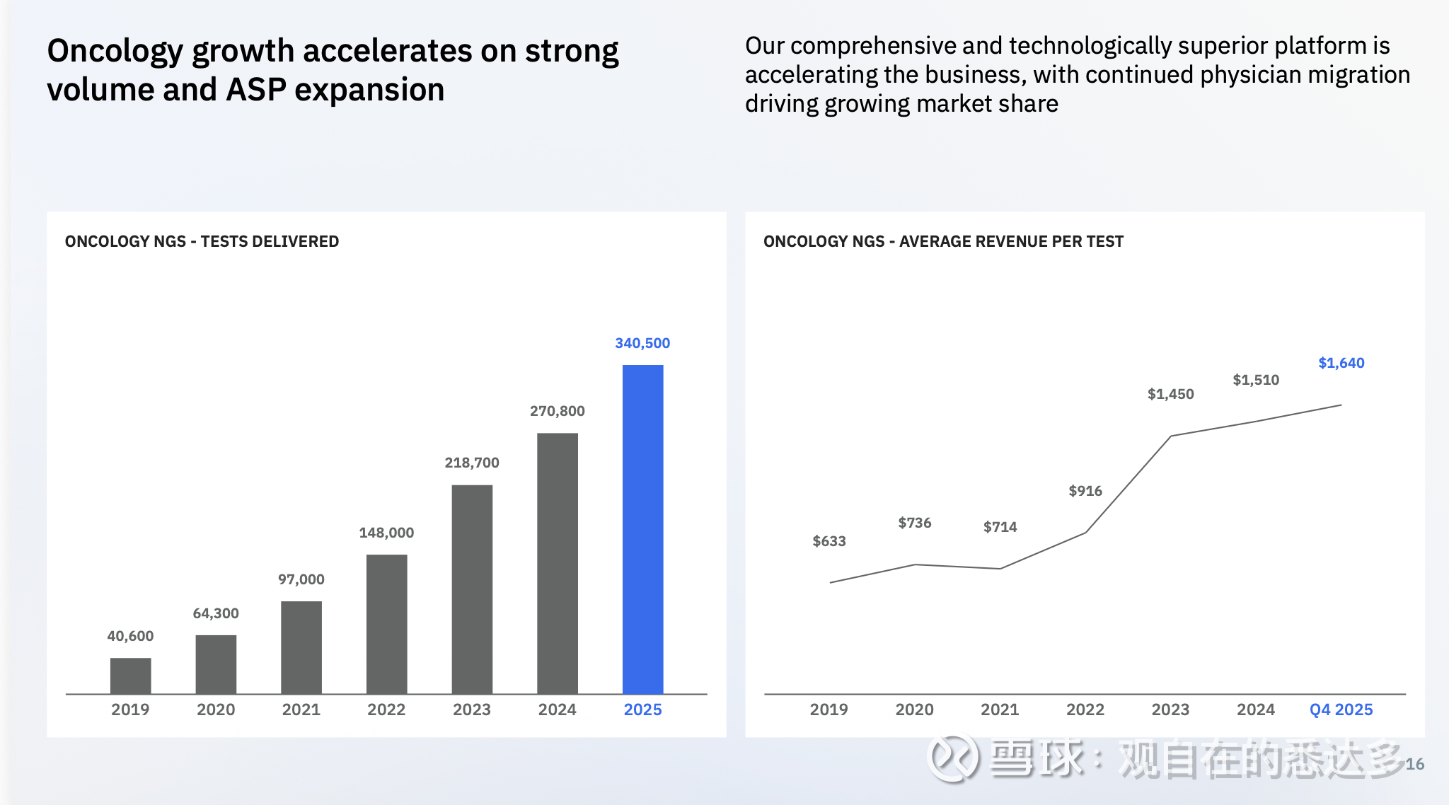 Volume(销量):核心肿瘤检测量增长 29%,遗传性检测增长 23%,MRD(微小残留病灶)检测量环比激增 56%。