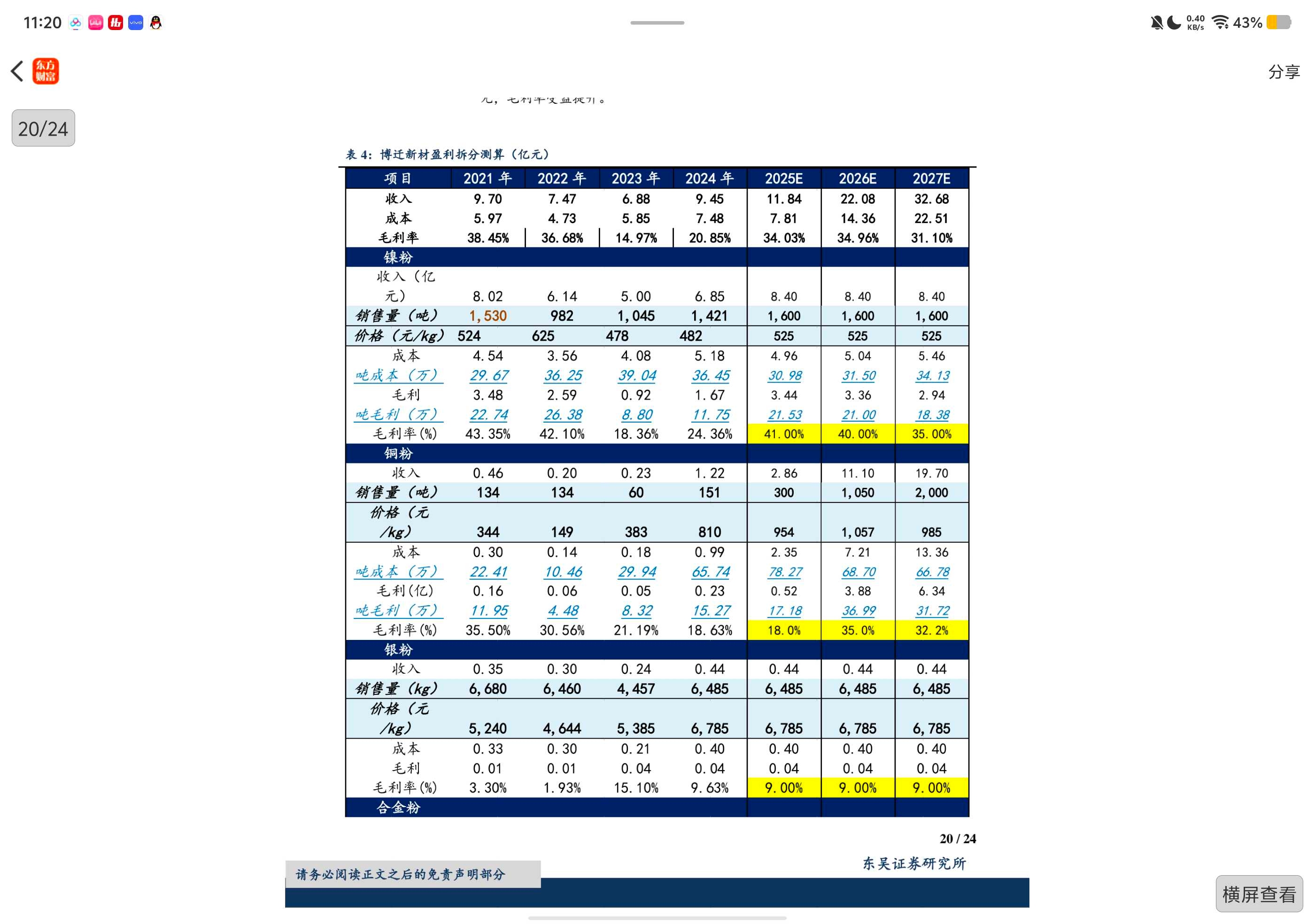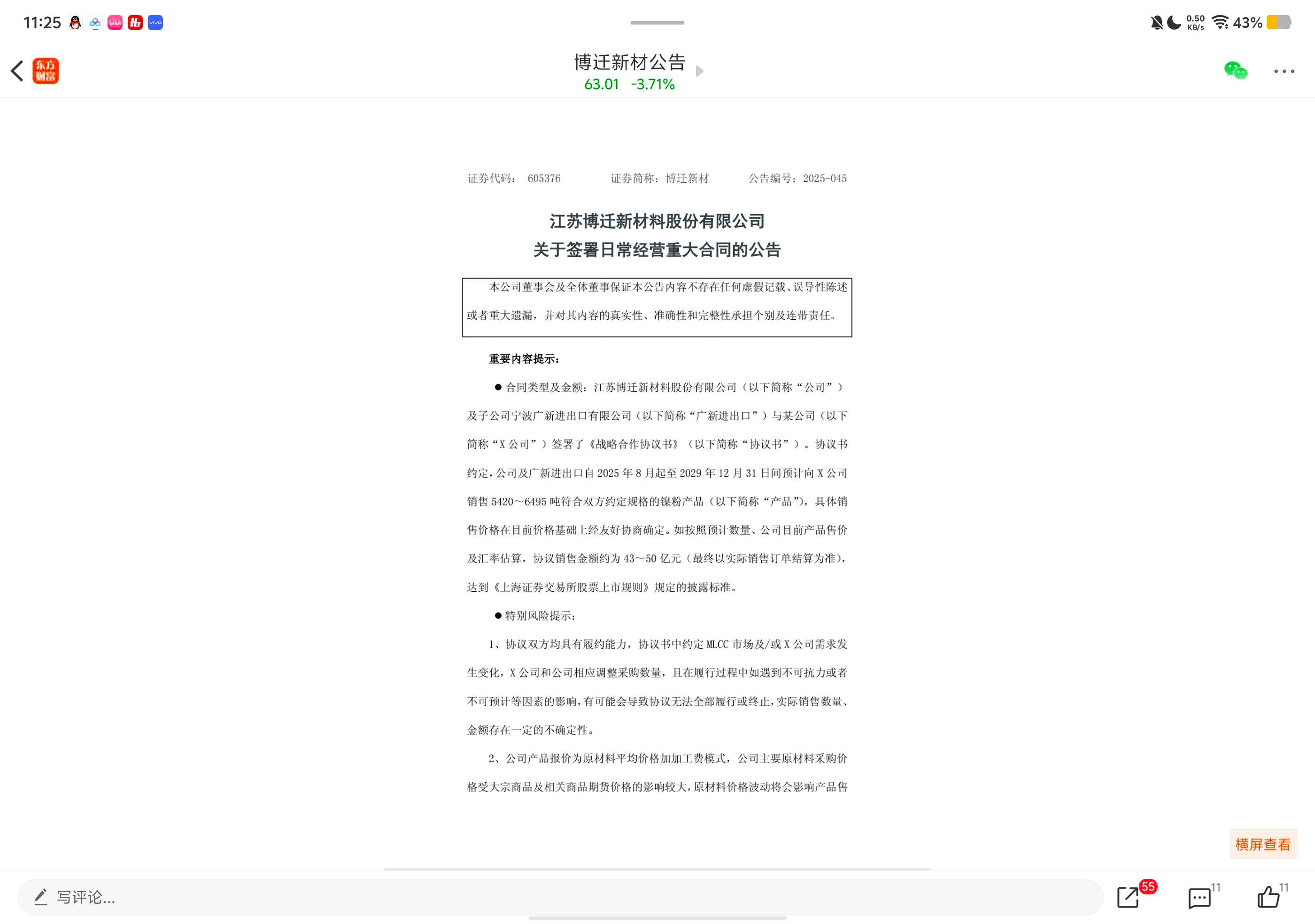 近期获得43到50亿订单,目前电子级镍份毛利二季度水平也已经道40左右。经过三季度涨价进一步利润率抬升。新订单平摊一年约10亿。预期有望达到年营收20亿翻倍增长。参照二季度21.45净利润率。有望实现年利润4亿。。从公告看,订单采用原料加加工费,结合下游需求旺盛,电子级镍粉加工程度高,即便镍原料可能涨价,大概率成本能转移到下游需求端。