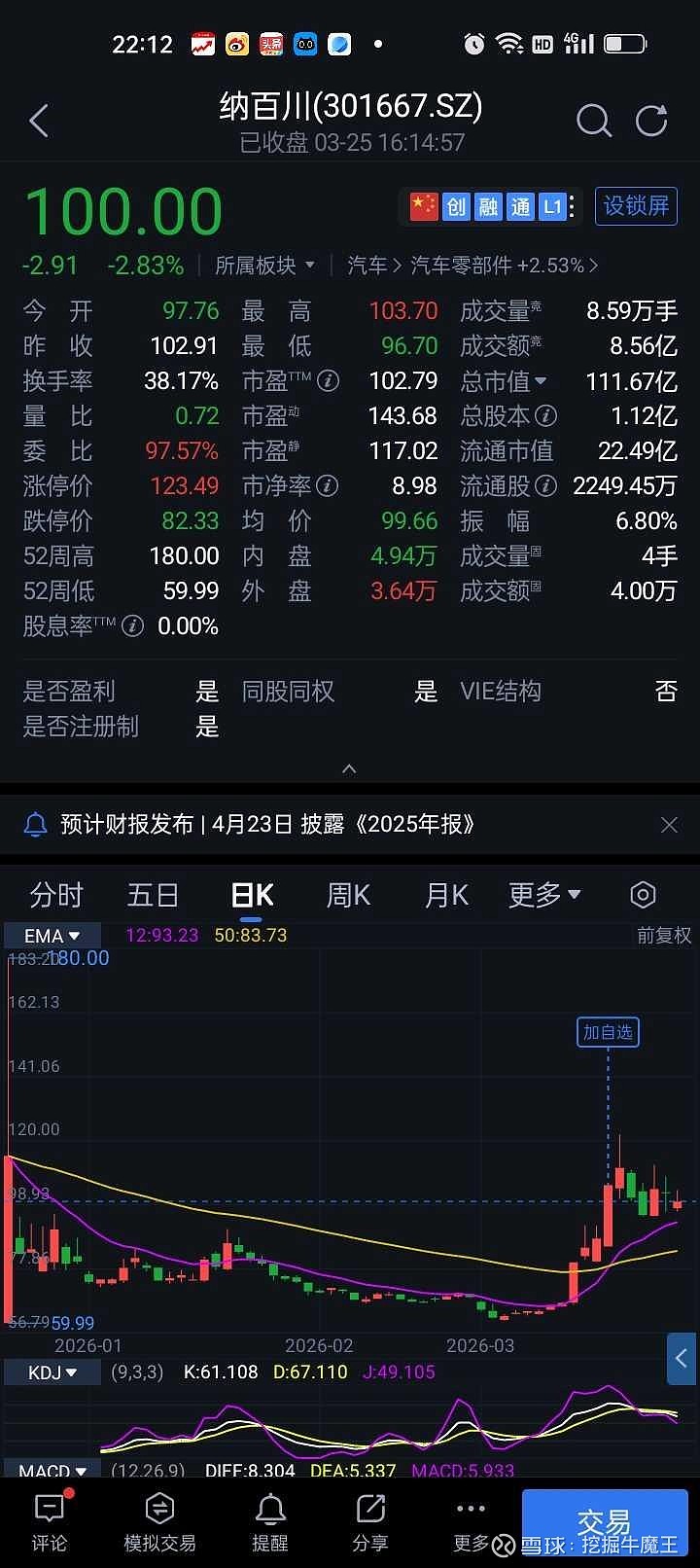 今日收盘:100.00元,-2.83%;成交额8.56亿,换手率38.17%