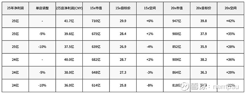 前些天基于单店营收未来演变趋势和2025年扣非的假设做了这张图表,因为我是个很保守谨慎的人,只以2w家门店为终局做了推断