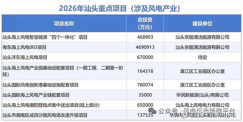 粤东海上风电002项目:总投资4690913万元,建设单位为汕头