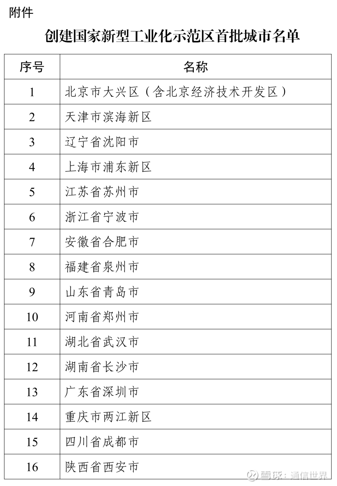 3月16日,工业和信息化部公布创建国家新型工业化示范区首批城市名单,北京、天津、沈阳、上海等16个创建城市上榜!