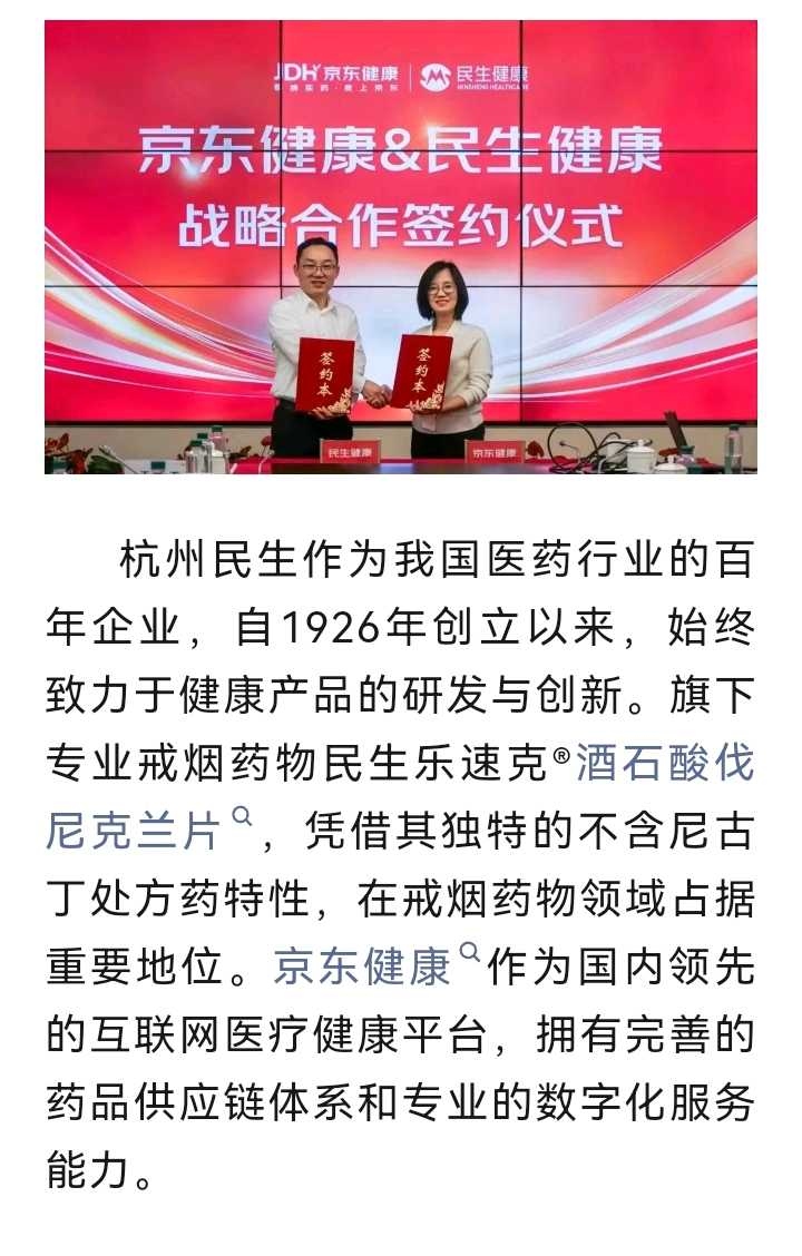 民生健康的戒烟药于2025年11月在京东健康和阿里健康开启销售。这款药物凭借独特作用机制且不含尼古丁的特点,搭配专属数字化服务,为成人戒烟提供解决方案