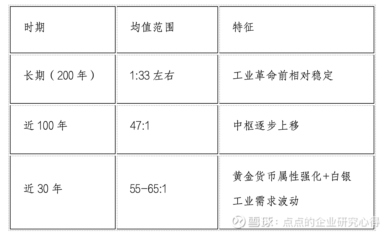 l 2000-2025年:中枢升至40-60(白银工业属性主导,经济波动加剧比值震荡)。
