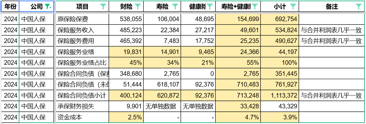 我先翻看了中国人保和中国财险(人保单独上市的财险公司)的财报,得到了这样的数据: