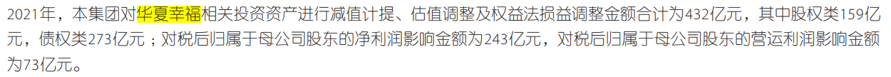 这里再补充一个信息,那就是平安当年是有对华夏幸福进行计提的。如下是21年财报原文: